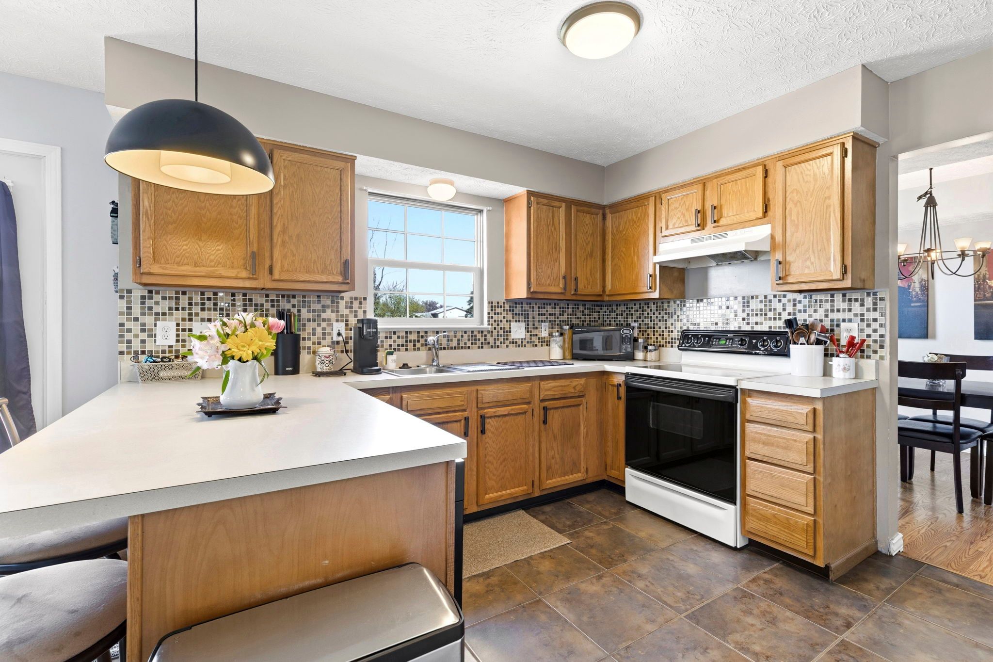 This move-in ready home offers a functional layout with a spacious living room with fireplace, a separate formal dining room, and an eat-in kitchen with ample cabinet space.