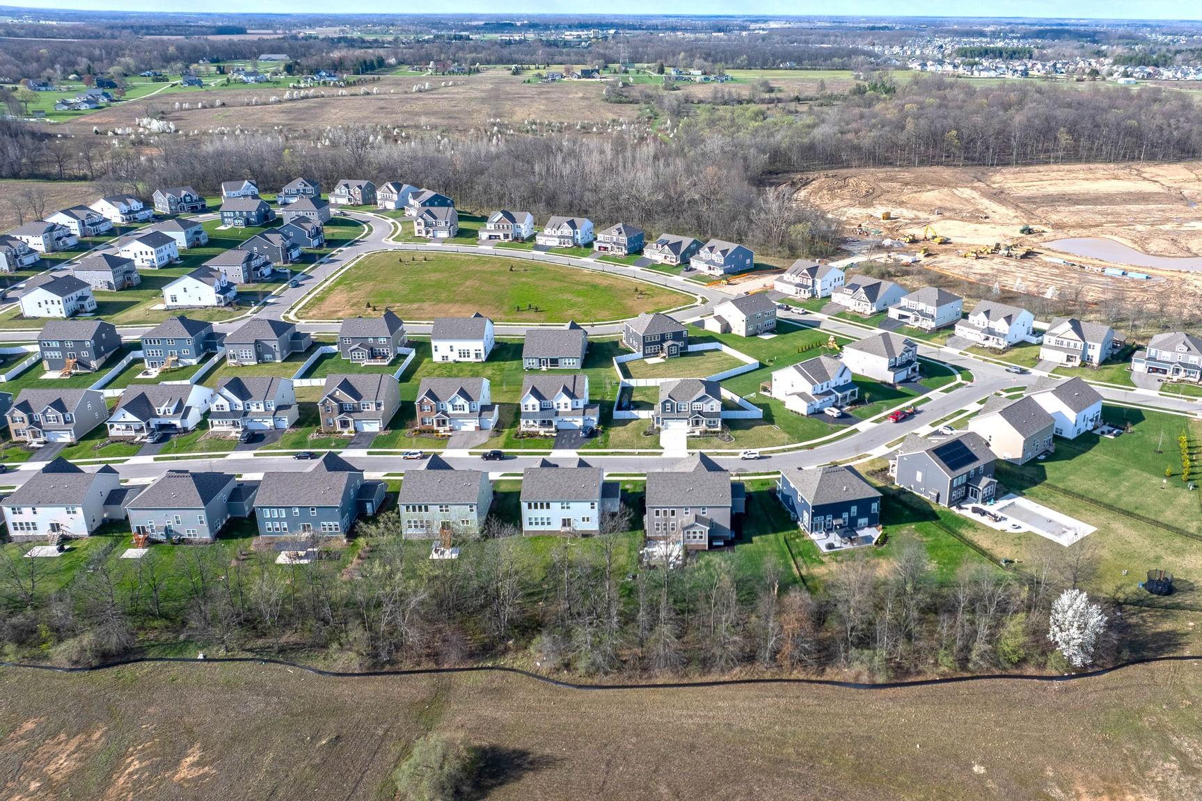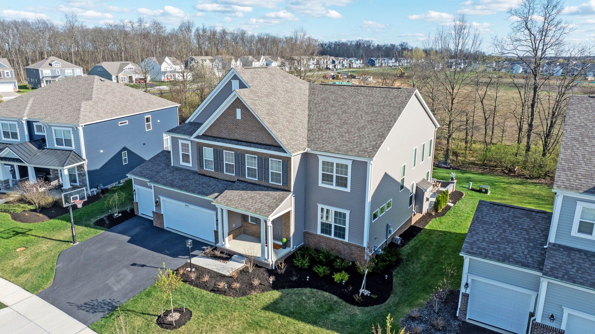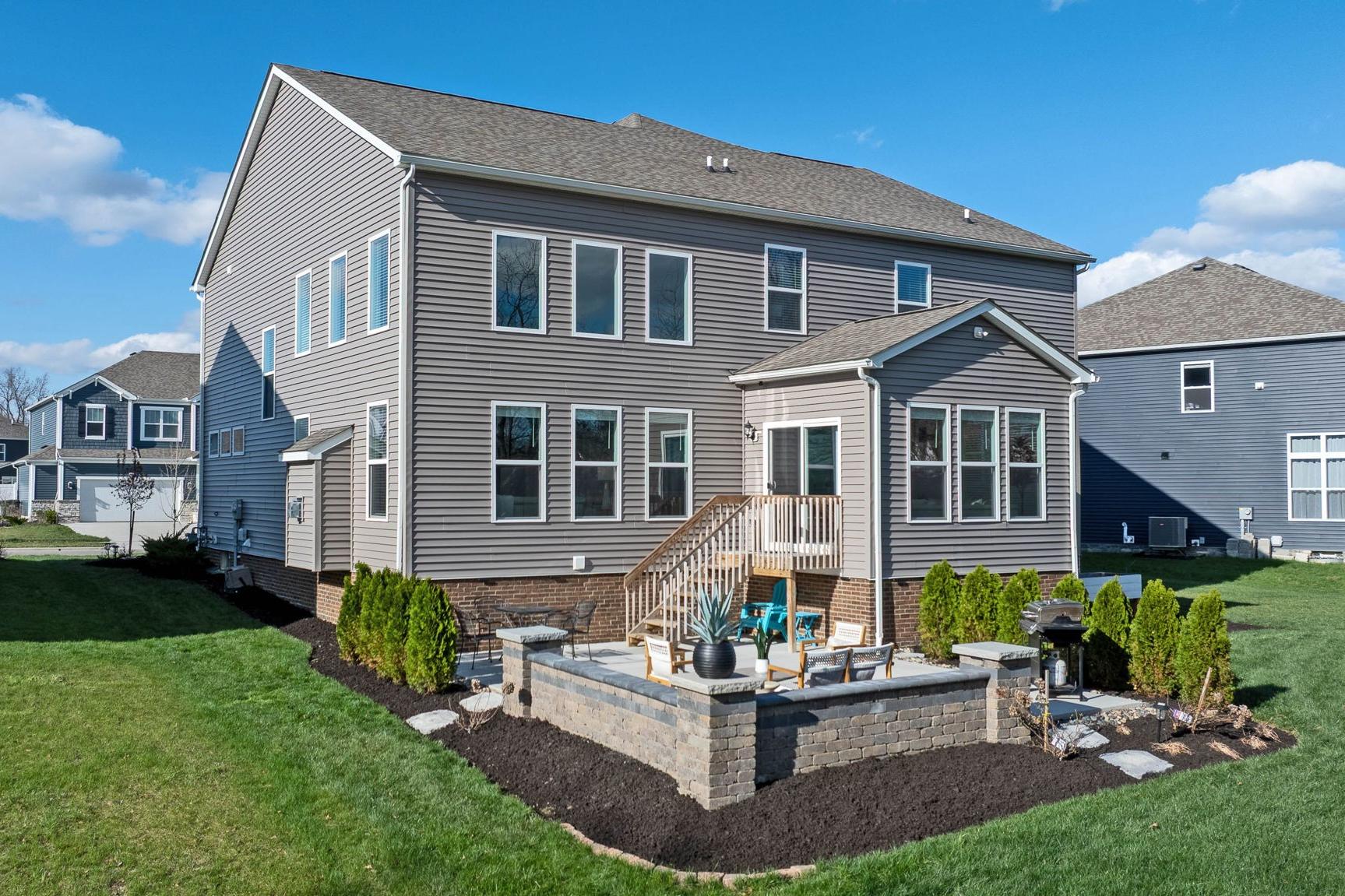 Welcome to this stunning, north-facing home completed in 2023, that's packed with after-market upgrades! Enjoy style and functionality with soft-close kitchen cabinets, quartz countertops, stainless steel appliances, farmhouse sink and more! This spacious floorplan boasts a 1st floor guest suite, 2-story great room, 2nd Floor Laundry (same level as other 4 bedrooms), loft area, abundant storage and HUGE basement (with a head-start on finishing). There are too many upgrades to list, but improvements include insulated interior walls, 20 x 25 concrete patio with paver walls and pillars, an extra door added to the primary closet (with access from bedroom and bathroom), basement improvements which include: finished bathroom with walk-in shower, full egress window, mechanicals dry-walled in with door access, space sectioned off that is planned as 6th bedroom with walk-in closet area ready for finishing! Enjoy sunsets in your serene backyard, nestled on your wooded lot that's especially private when trees are in full bloom. There's even room for a pool! You can't build this home for this price! Transferrable 10-year warranties: structural and dry basement guarantee. Skip the building process and hiked prices on materials and move straight into this gorgeous home! This one won't last! Hurry in to see it today!