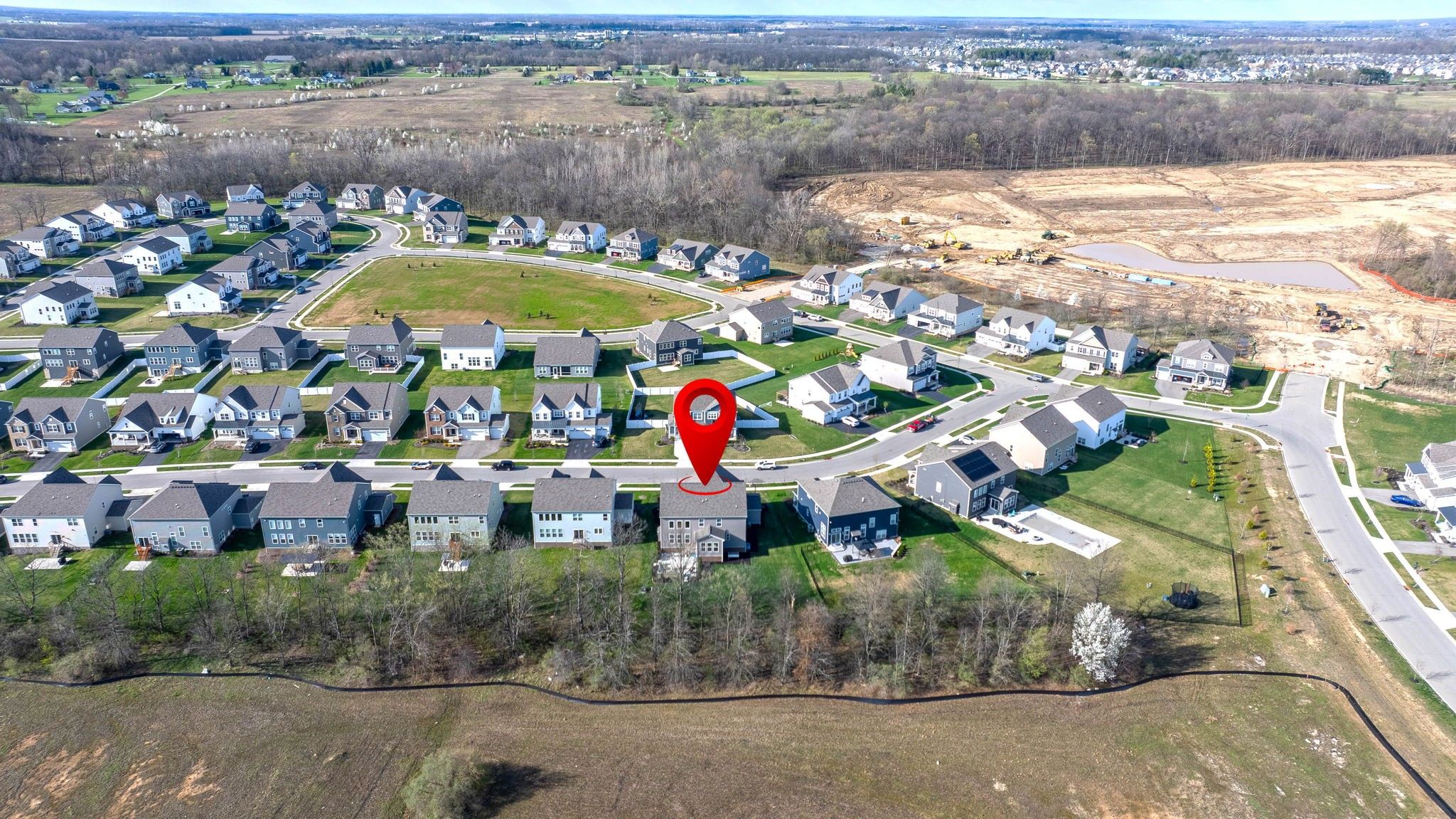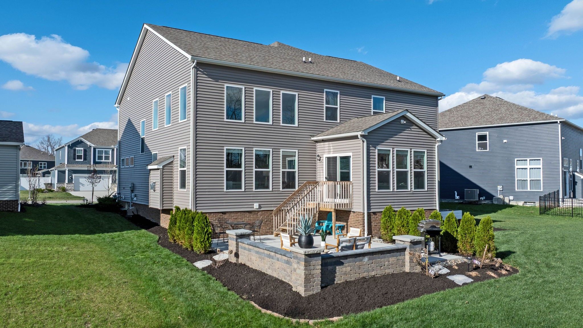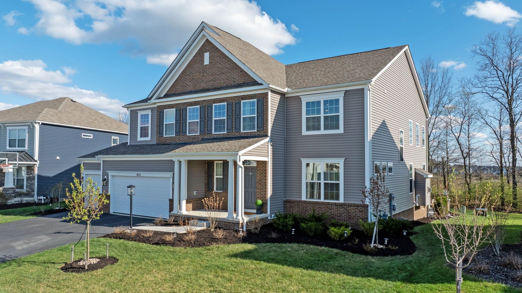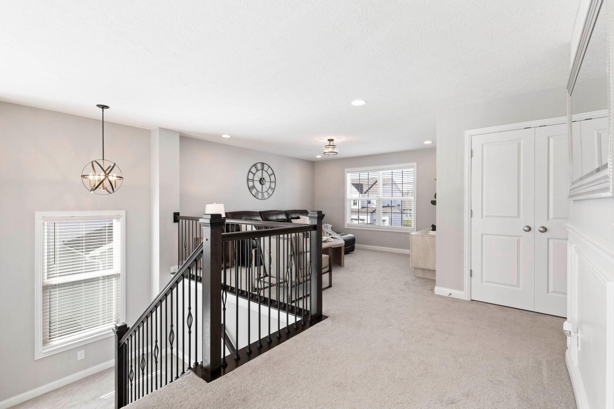 Welcome to this stunning, north-facing home completed in 2023, that's packed with after-market upgrades! Enjoy style and functionality with soft-close kitchen cabinets, quartz countertops, stainless steel appliances, farmhouse sink and more! This spacious floorplan boasts a 1st floor guest suite, 2-story great room, 2nd Floor Laundry (same level as other 4 bedrooms), loft area, abundant storage and HUGE basement (with a head-start on finishing). There are too many upgrades to list, but improvements include insulated interior walls, 20 x 25 concrete patio with paver walls and pillars, an extra door added to the primary closet (with access from bedroom and bathroom), basement improvements which include: finished bathroom with walk-in shower, full egress window, mechanicals dry-walled in with door access, space sectioned off that is planned as 6th bedroom with walk-in closet area ready for finishing! Enjoy sunsets in your serene backyard, nestled on your wooded lot that's especially private when trees are in full bloom. There's even room for a pool! You can't build this home for this price! Transferrable 10-year warranties: structural and dry basement guarantee. Skip the building process and hiked prices on materials and move straight into this gorgeous home! This one won't last! Hurry in to see it today!