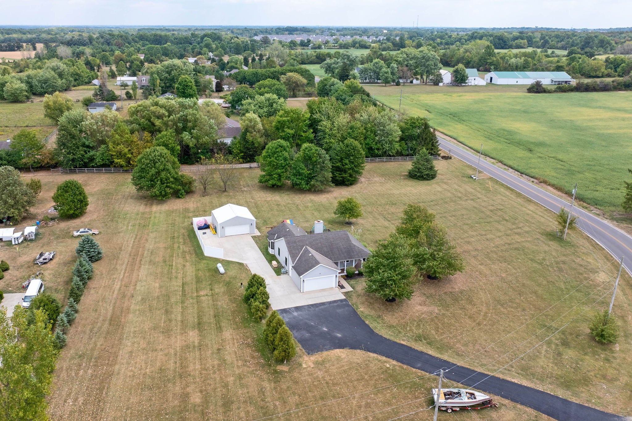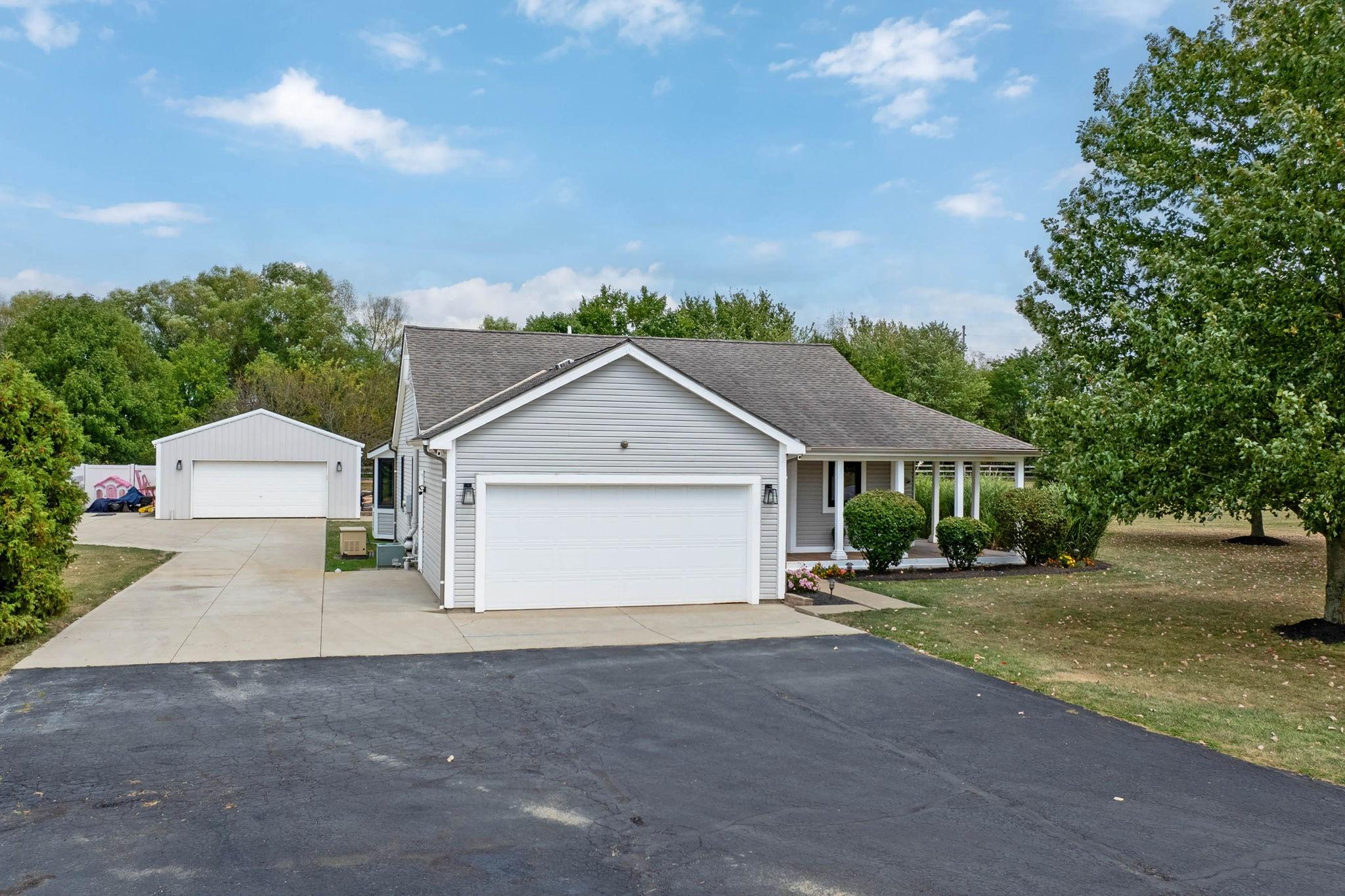 Looking for country living with close proximity to the city? You've found it! This updated, open concept ranch home sits on a beautiful (nearly) 2.5 acres & is close to everything Plain City & Dublin have to offer. The kitchen features updated backsplash, white cabinetry and SS appliances. Both bathrooms have been remodeled with the primary suite bath being brand new! The finished basement has newly installed carpet throughout. The detached garage features 3, 220 amp outlets, is drywalled and insulated & there are 2, 220 amp hookups on the outside of the house for your RV, Camper, or other toys. Home generator provides assurance during power outage. A variance has been granted for an additional 1800 sq ft pole barn or addition to current detached garage. Hurry before this one is gone!